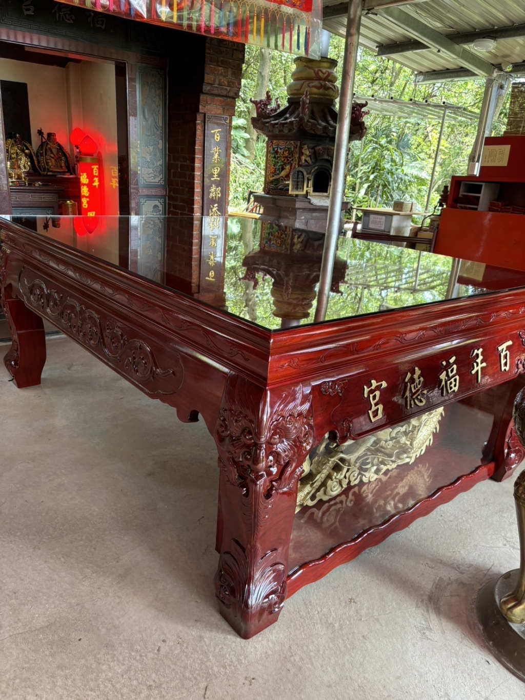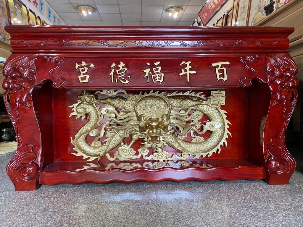 深雕雙龍桌腳廟桌-百年福德宮