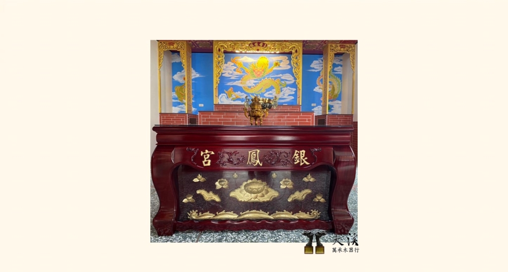 柚木上材製造,結合大溪在地雕刻老師傅工藝,每一朵蓮花都栩栩如生,桌面採用紅寶石大理石,整體更加氣派莊嚴