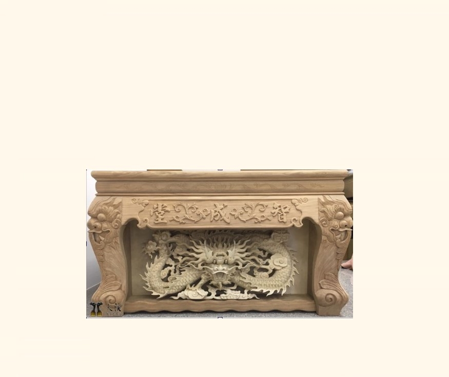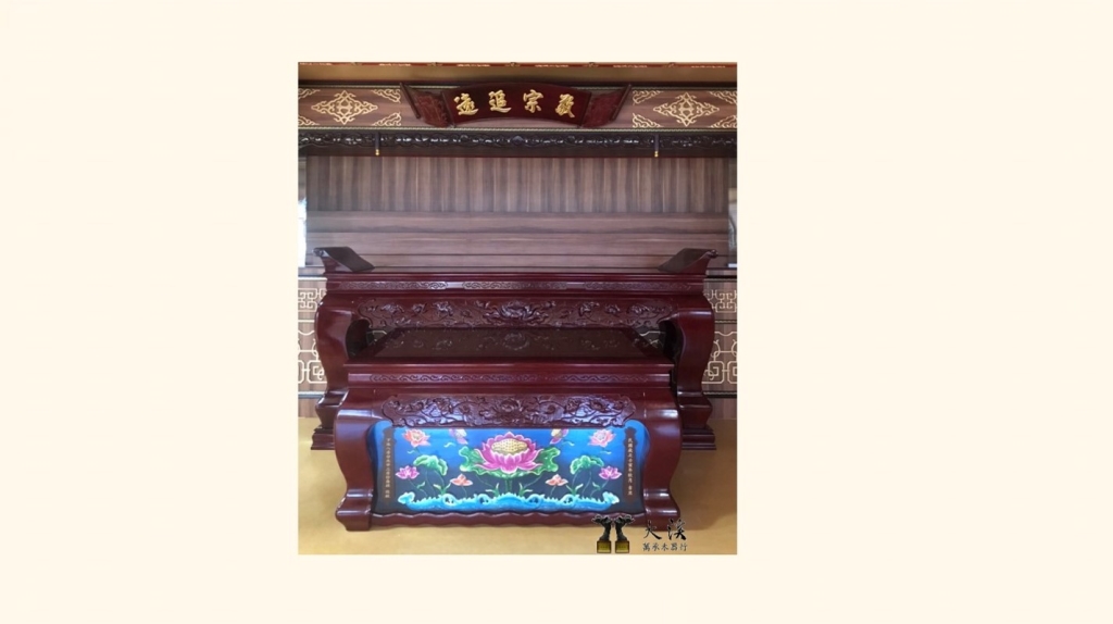 頂級柚木上材整塊桌板,流線的大繳款結合蓮花雕刻,莊嚴氣派