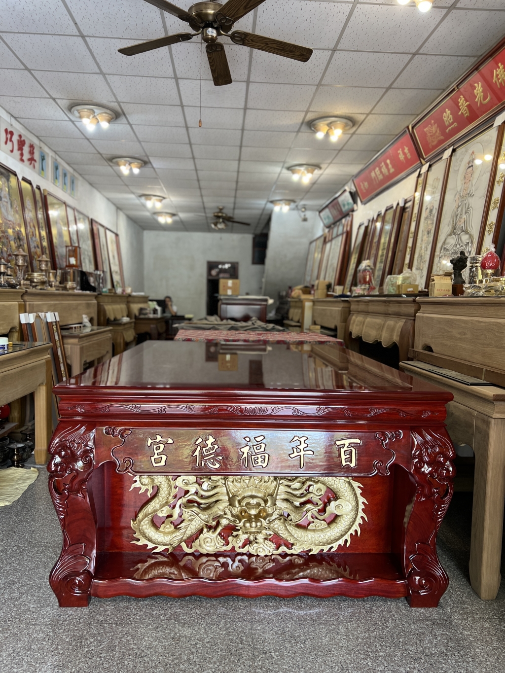 深雕雙龍桌腳-紅寶石桌板廟桌